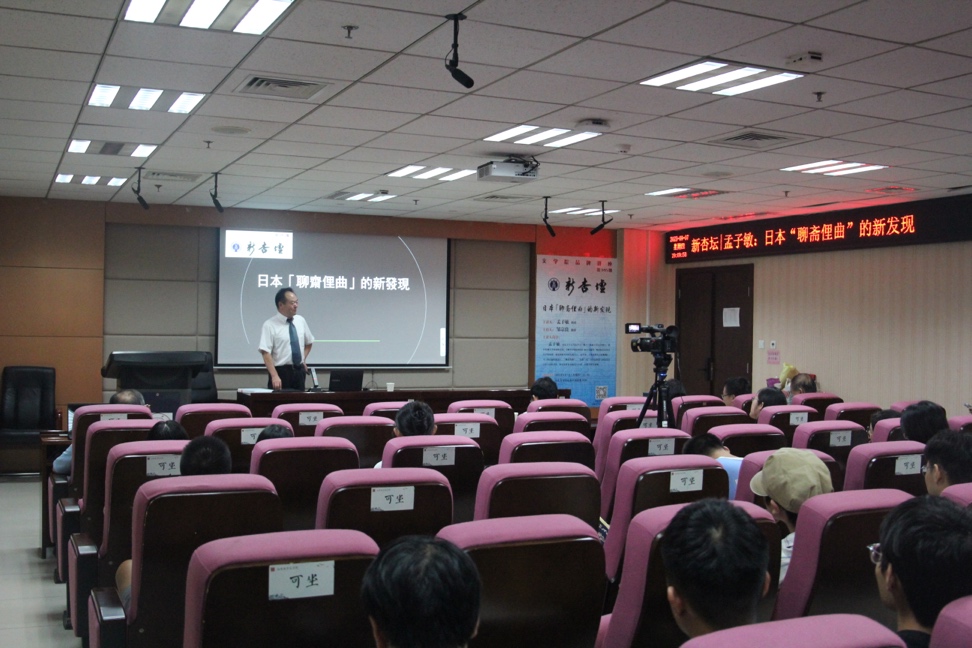 9月7日晚19时,松山大学人文学部孟子敏教授做客第345期“新杏坛”,于知新楼A620室作题为“日本‘聊斋俚曲’的新发现”的学术讲座。讲座由邹宗良教授主持,文学院院长杜泽逊教授、副院长樊庆彦教授、张树铮教授、刘书刚副教授出席,文学院三十多位同学前来聆听讲座。