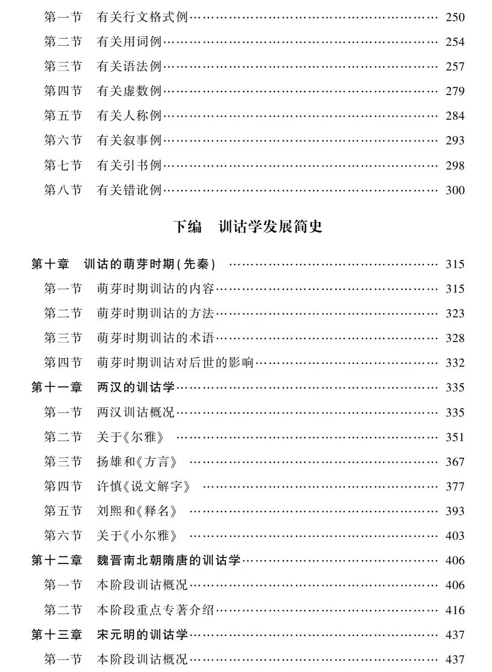本书特设“训诂的方法”上、中、下三章介绍训诂亦即释词的规律,其“常用训诂术语”一章,全面地介绍了长期积累下来各式训诂术语的含义和用途。“训诂工作必备之知识"一章专门介绍对训诂工作很重要而其他书籍一般又介绍不到的古人遣词造句的一般规律,即古书词例、文例、错讹条例等知识,这既为训诂的教学和运用提供了便利,也节省了不少翻阅、检查的辛劳。而本书下编“训诂学发展简史”于训诂学的产生和发展作了多方面的探讨,阐述了各时期其他学科所给的影响,并且全面系统地介绍了各个发展时期各类训诂书的基本情况和知识,这一方面深入地显示了训诂学之发展规律,一方面也切实地提示了训诂的方法与条例,对训诂理论和技能的培养都是很重要的。