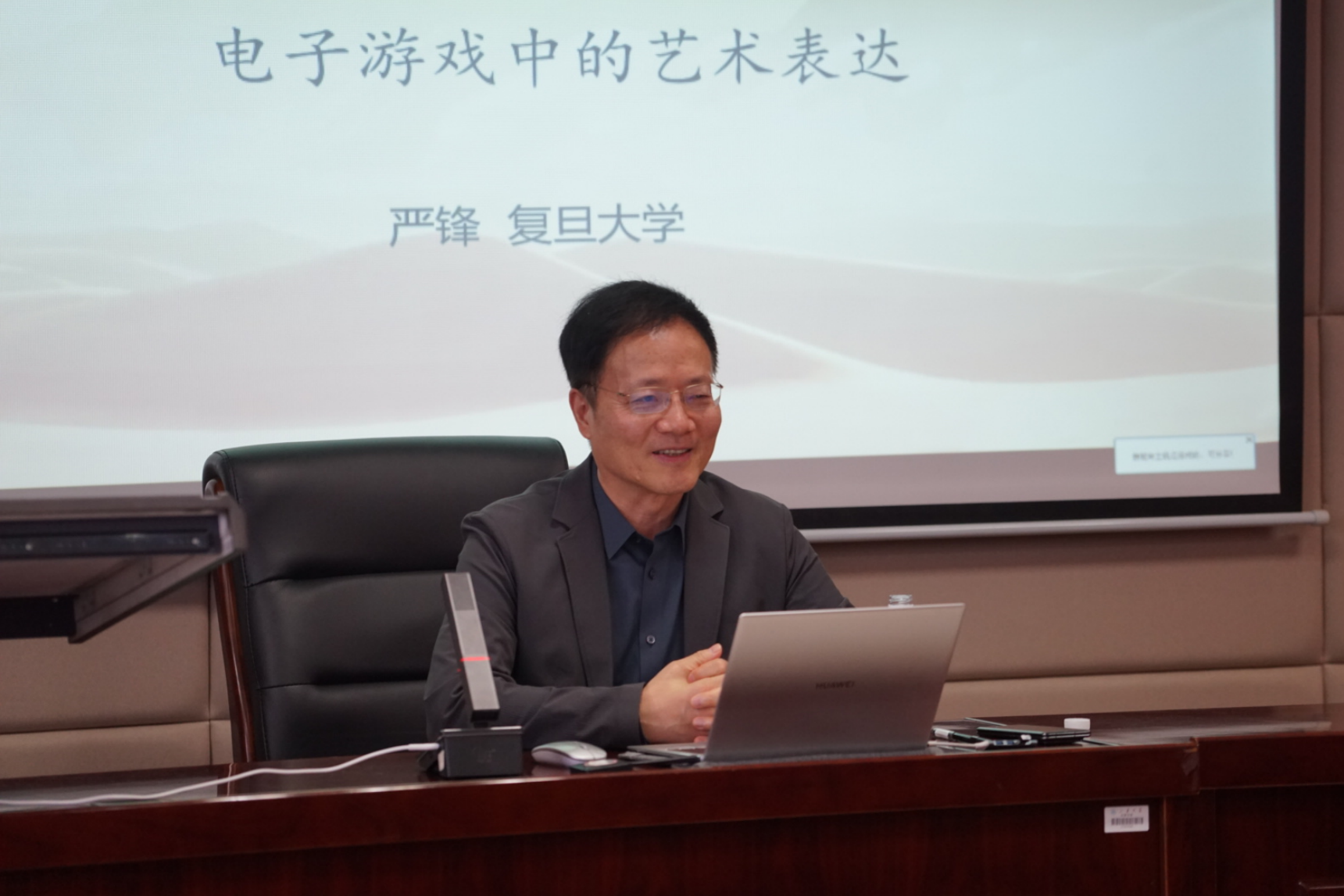 宫立教授代表师生对严锋教授的精彩讲座表示感谢。宫立教授指出,严锋教授的讲座内容丰富,观点深刻。通过建立电子游戏与传统艺术的对话,严锋教授重新定义了数字时代的审美范式。这不仅拓展了我们对游戏艺术属性的认知,更为当下文艺研究提供了重要启示。