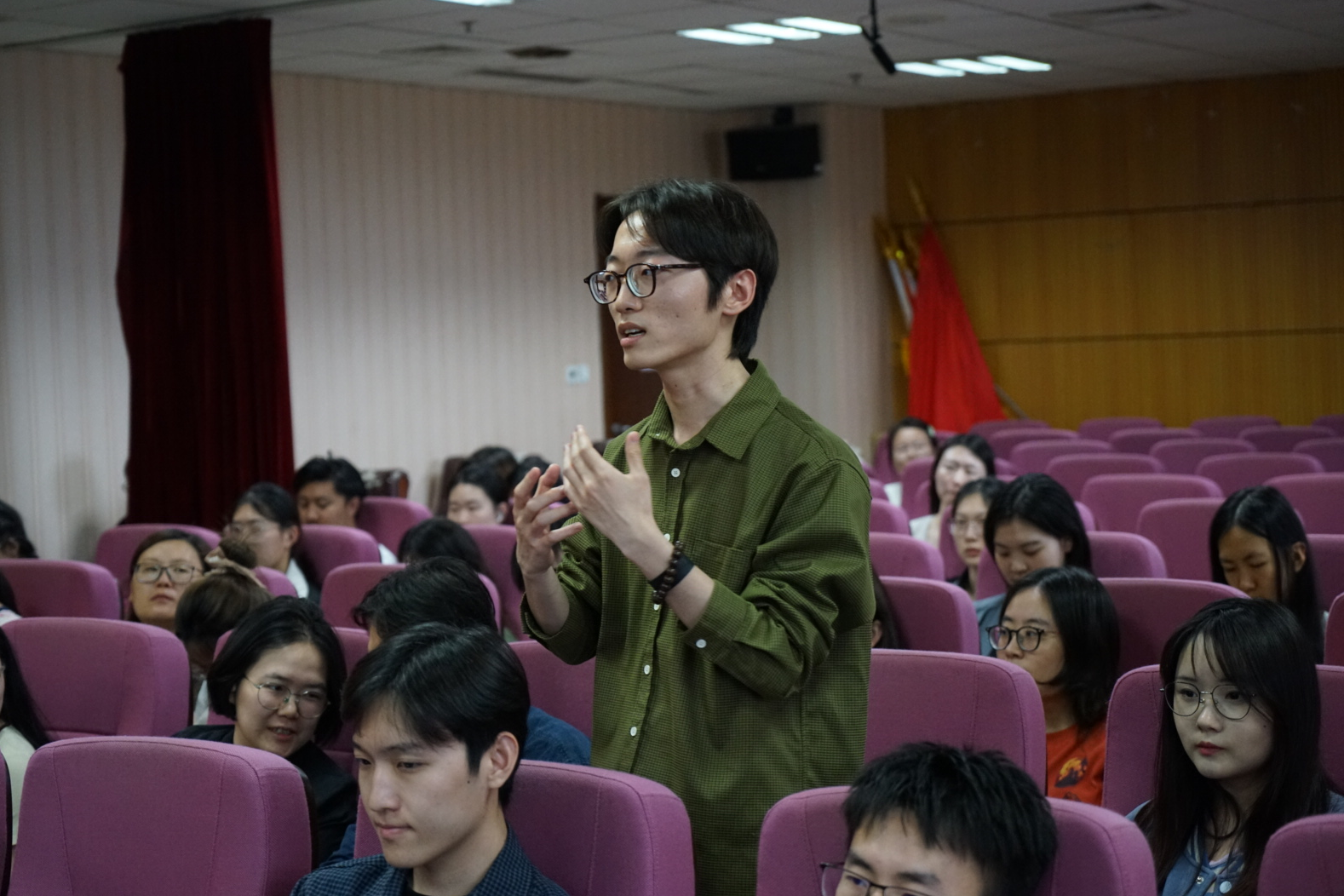 提问环节中,与会师生与严锋教授积极交流,就电子游戏与传统文学塑造形象的差异、游戏与现实的边界限定、游戏化教育的合理限度等问题展开热烈讨论,现场交流氛围十分活跃。至此,讲座在热烈的掌声中圆满结束。