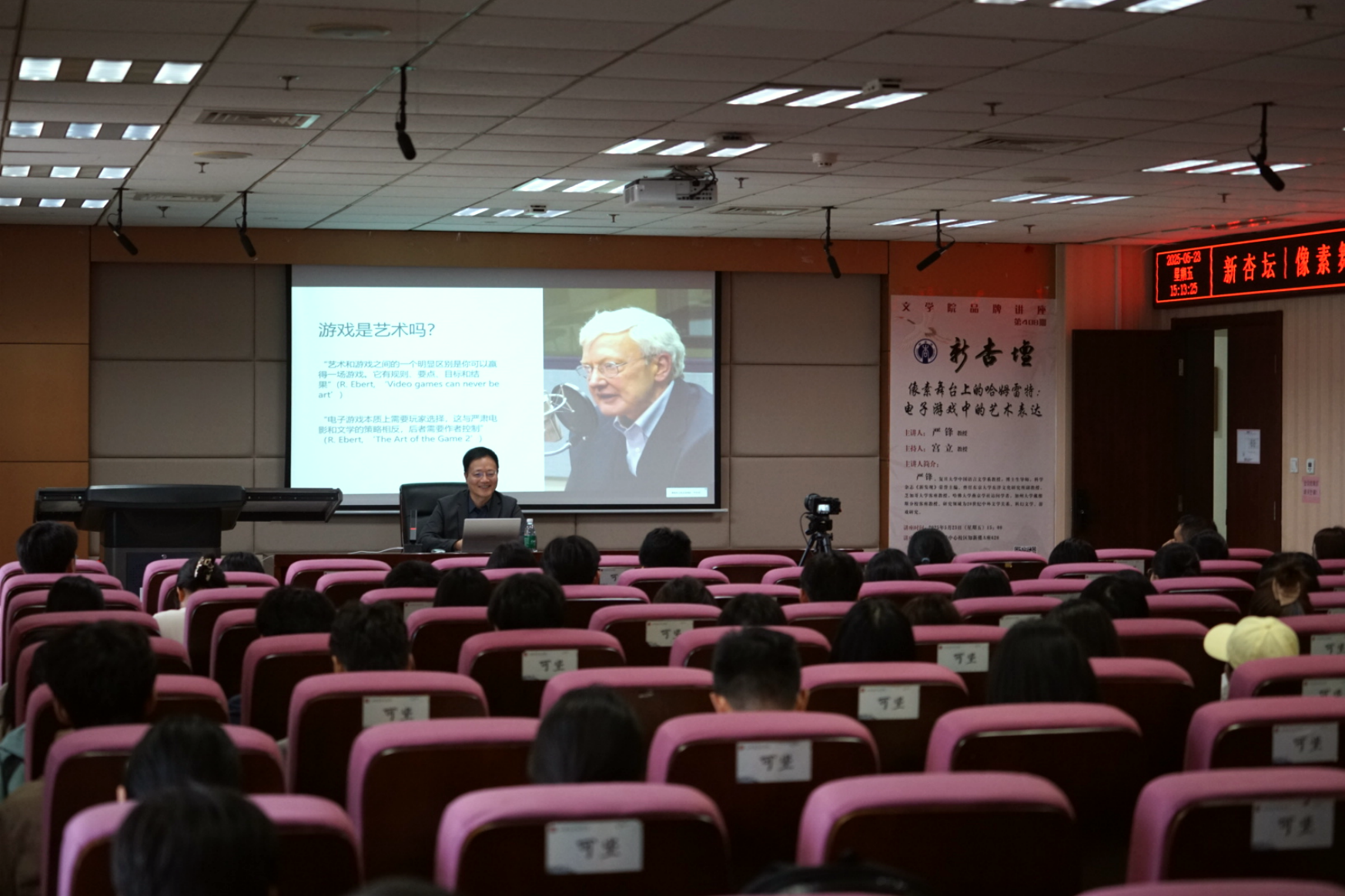 5月23日15时,复旦大学中国语言文学系教授严锋做客第408期“新杏坛”,于知新楼A620室作学术讲座,题为“像素舞台上的哈姆雷特:电子游戏中的艺术表达”。讲座由248cc永利集团宫立教授主持,叶杨曦老师、王鑫老师出席,吸引了校内数十名师生前来聆听。