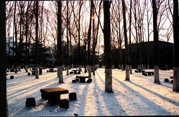 晚饭后是我们散步聊天的好时光,在文史楼后面的小路、公交楼旁的小树林、操场上,都是我们的散步乐园,我们总是手里拿着一包傻子西瓜子,天女撒花般边吃边吐边漫无边际地走着,烦恼和快乐都在“咔嚓咔嚓”的嗑瓜子声中分担和分享了。时常嗑得嘴唇发白、舌头发麻才想起该回教室上晚自习了。由于长期嗑瓜子给我带来了“后遗症”:我的门牙上下各一颗有个小缺口,成了“瓜子牙”。散步时,你总是像个社会学家一样给我讲解如何跟人交往,如何说话才让人舒服。你总批评我说话太直,往往让人受不了:你还举例说记得有一次一个山西的同学去逛人民商场后边的小商品市场回来,买了一条彩条连衣裙,她不太肯定是否好看,问我们的意见,我看了看,毫不留情地说:“不好看,有点像阿凡提穿的衣服,也有点像医院里的病号服……”话还没说完,那个同学的脸已经有点变色了。