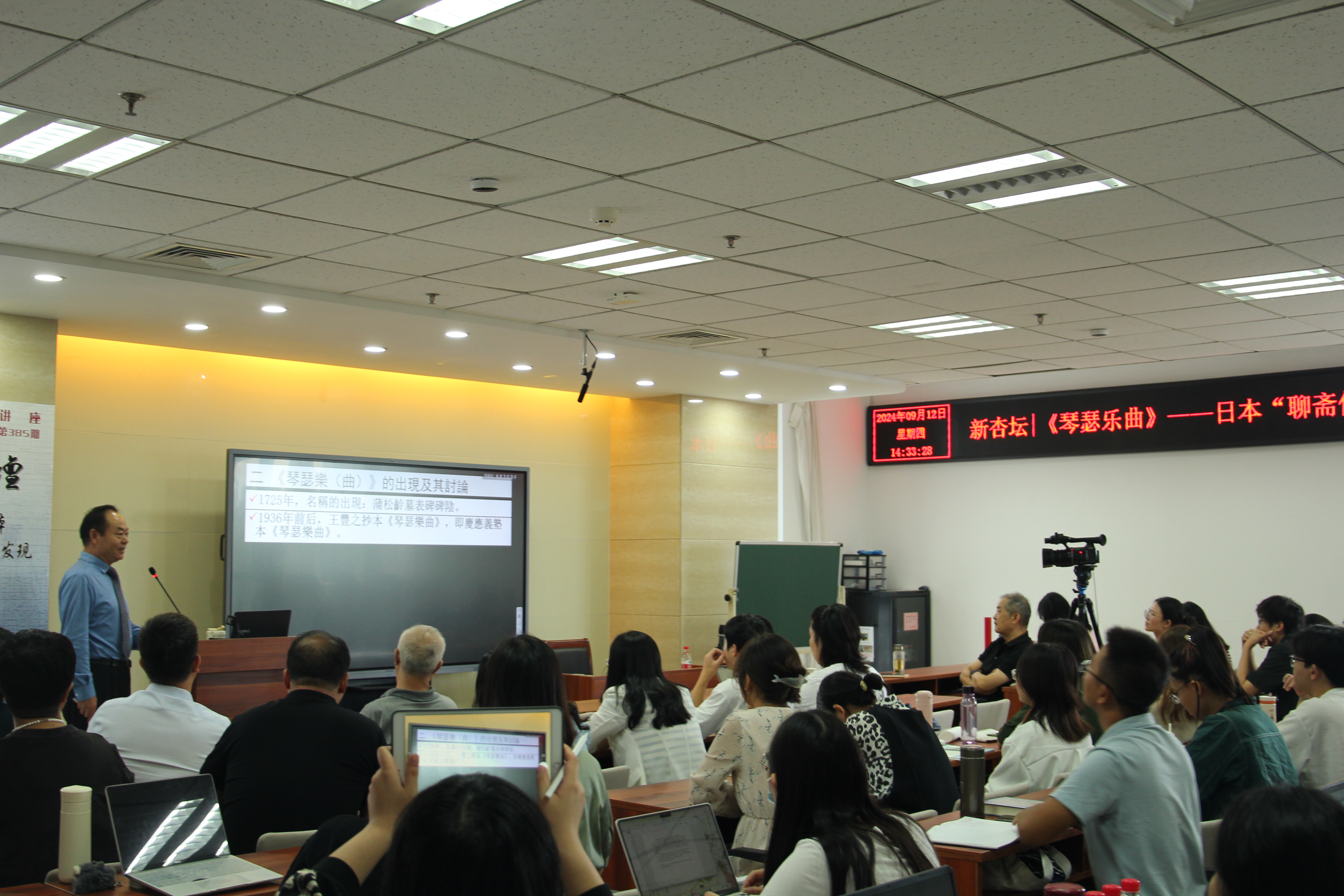 9月12日14时,松山大学人文学部孟子敏教授做客第385期“新杏坛”,于知新楼A606室作学术讲座,题为“《琴瑟乐曲》——日本‘聊斋俚曲’的颠覆性发现”。讲座由邹宗良教授主持,文学院张树铮教授出席,特别邀请有蒲松龄纪念馆、《蒲松龄研究》期刊、淄博师专等校外专家学者。讲座吸引了近五十名师生前来聆听。