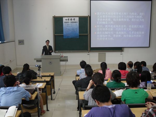 最后,曹顺庆教授以“路漫漫其修远兮,吾将上下而求索”作结,鼓励大家继续对“钱学森之问”进行思考,并在以后的学习研究中找准定位,不断丰富自己的知识结构,同时树立正确的学习习惯,争取立志成才。