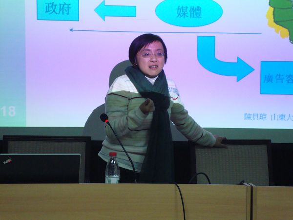12月15日晚,香港中文大学兼任教授、《壹周刊》前总编辑陈贝琼女士做客新杏坛,在文史楼文艺美学报告厅为文学院师生带来了一场题为“记者的力量——媒体民办及之后”的精彩讲座。山东大学传播学研究所所长冯炜老师主持了本次讲座。